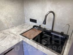 Телевизор Xiaomi в гостиной с диагональю 65".В кухонный гарнитур встроена многофункциональная раковина, техника фирмы Hyundai:плита,духовка и микроволновка с сенсорным управлением. Робот-пылесос