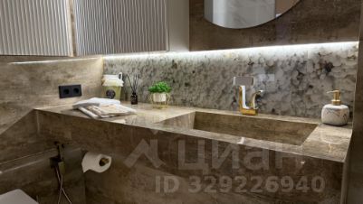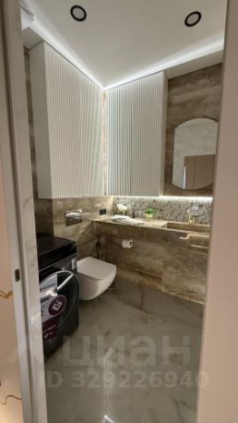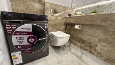 В ванной теплая стена для полотенец, проточный водонагреватель. Все смесители европейские. Индивидуальная раковина с переходом в столешницу, из керамогранита толщиной10мм(Турция).В душевой зоне ниши. Встроены подсветки. Сенсорное зеркало. Толстостенная акриловая ванна75х170см.Сенсорная стирально-сушильная машина Gressel на10,5кг.Инсталляция,гигиенический душ