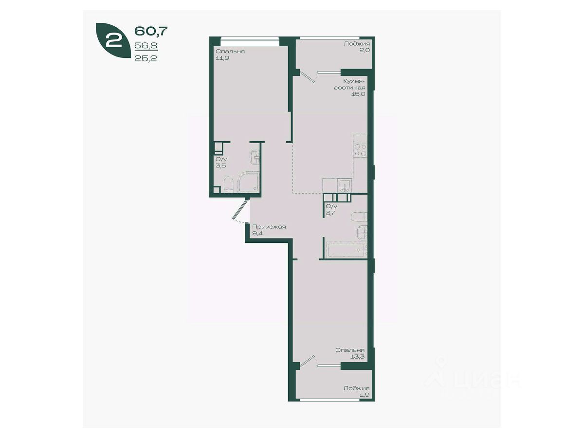 Продается современная 2-комнатная квартира в новом ЖК "Ботаника" — проект федерального застройщика "ЮгСтройИнвест".