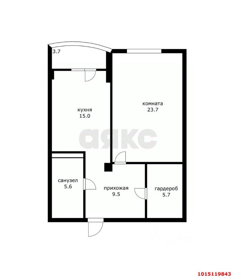 общая площадь — 60 м2кухнягостиная — 15 м2комната — 23.7 м2 (спальня, кабинет или творческая мастерская — решайте сами);Этаж: 4.
