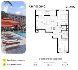 Продается 2-комнатная квартира площадью 62.60 кв. м без отделки, расположенная на 3 этаже, в новом жилом комплексе комфорт-класса "Кипарис". Прекрасный район, окруженный реликтовыми лесами и живописным рельефом гор. Адрес жилого комплекса - муниципальный округ Анапа, село Сукко, улица Мирная, дом 13.