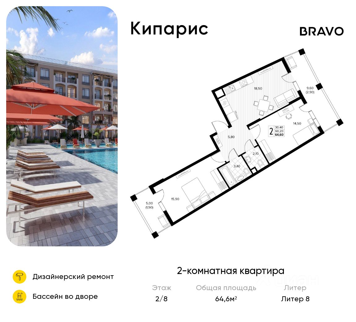 Продается 2-комнатная квартира площадью 64.60 кв. м без отделки, расположенная на 2 этаже, в новом жилом комплексе комфорт-класса "Кипарис". Прекрасный район, окруженный реликтовыми лесами и живописным рельефом гор. Адрес жилого комплекса - муниципальный округ Анапа, село Сукко, улица Мирная, дом 13.