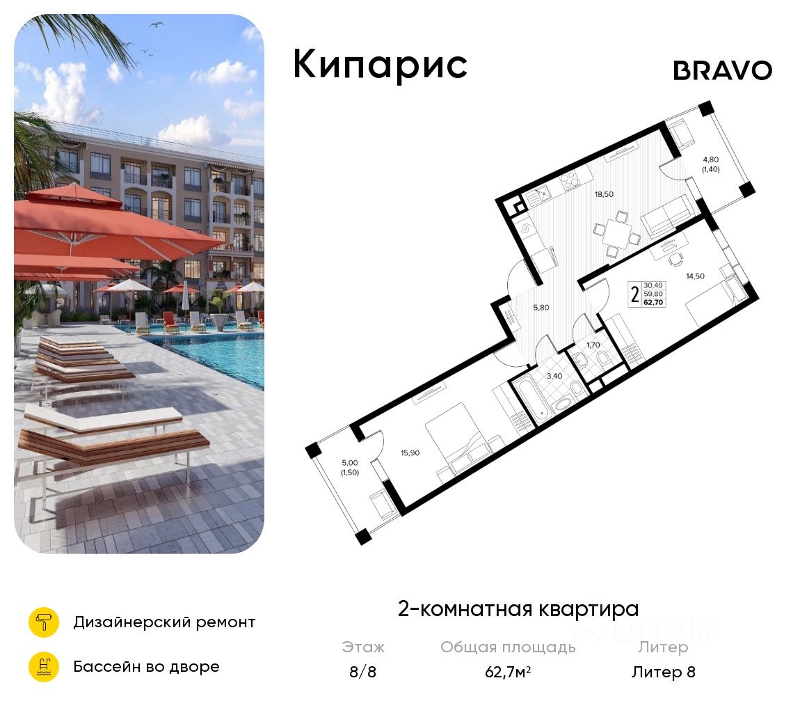 "Кипарис" - это жилой комплекс, где проявляется страсть к жизни. Здесь собраны все условия для активного отдыха, 19 бассейнов на территории, собственная развитая социальная инфраструктура и множество квартир с вдохновляющими пейзажами на долину Сукко.
