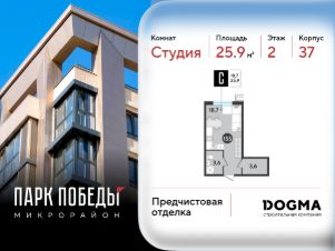 Срок сдачи: 3 кв. 2026, общей площадью 25.9 кв.м., на 2 этаже.