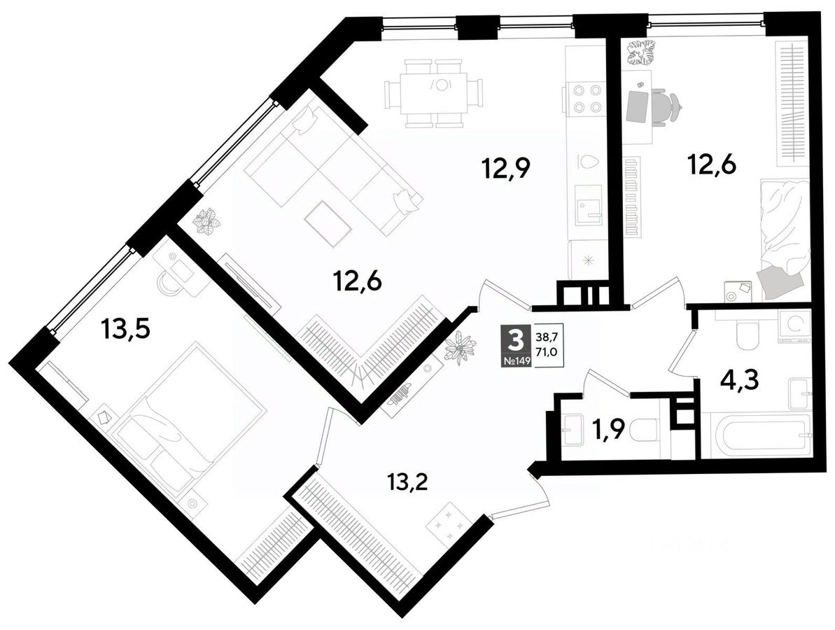 В продаже 3-комнатная квартира от застройщика! Мкр. "ДОГМА ПАРК" г. Краснодар, Литер 32 Срок сдачи: 2 кв. 2027, общей площадью 71.00 кв.м., на 6 этаже.