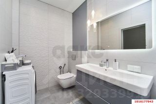Ванная комнаты оформлена в едином стилевом решении с использованием качественной сантехники и современных отделочных материалов.