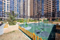 Во дворе современная детская площадка с безопасным покрытием и огороженной территорией, отлично оформленная придомовая ландшафтная составляющая. Территория комплекса закрытая, видеонаблюдение, автоматические ворота при въезде. Для автовладельцев предусмотрен большой подземный паркинг.