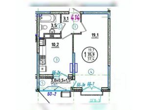 Квартираплощадью 37.4 кв. м, этаж/этажность 14/17по адресу: г. Краснодар, ул. Западный Обход