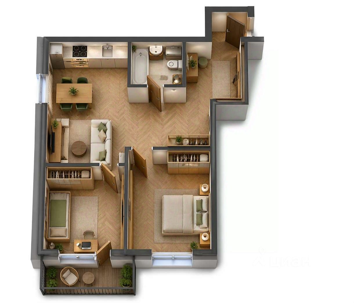 — Редкое сочетание: две спальни + кухня-гостиная