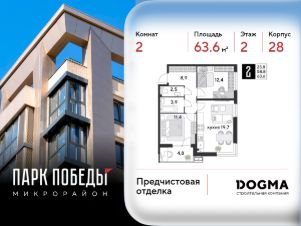 Срок сдачи: 4 кв. 2025, общей площадью 63.6 кв.м., на 2 этаже.
