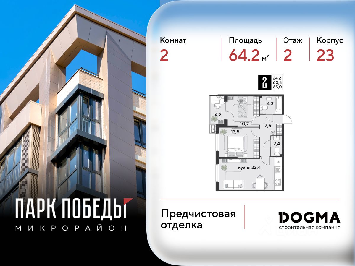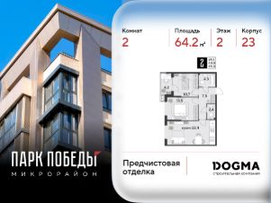 Срок сдачи: 2 кв. 2026, общей площадью 64.2 кв.м., на 2 этаже.