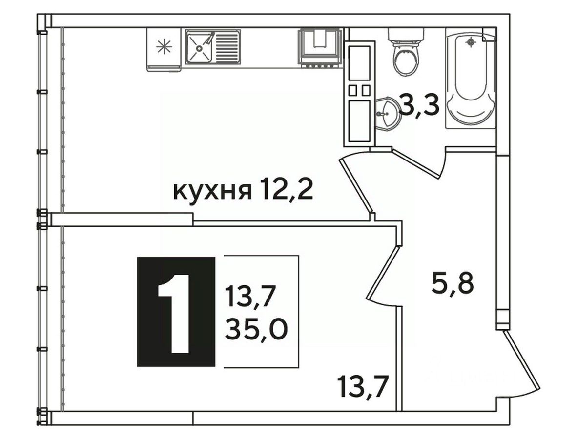 Общая площадь35 м²