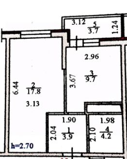 Квартира общей площадью 39 м2, кухня - 10 м2, комната, 18 м2, санузел совмещенный+ балкон 3,7 м2.