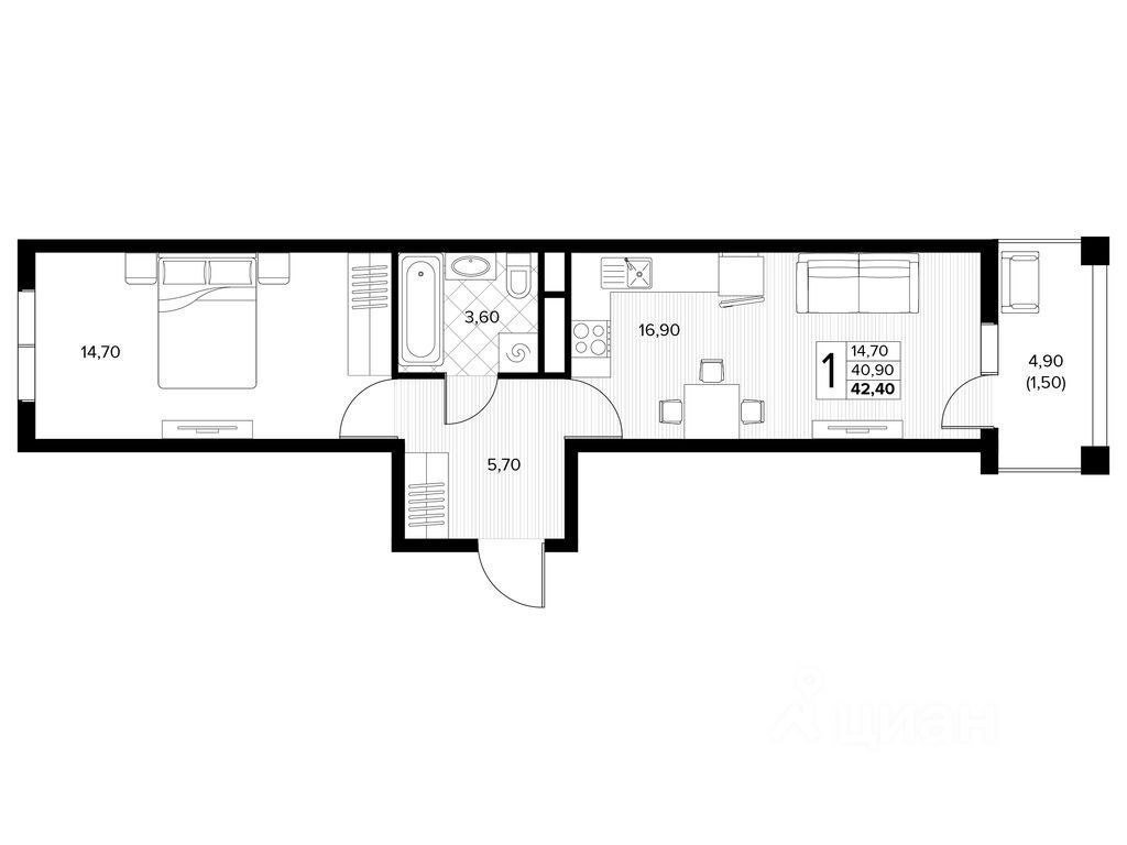 Общая площадь42,4 м²