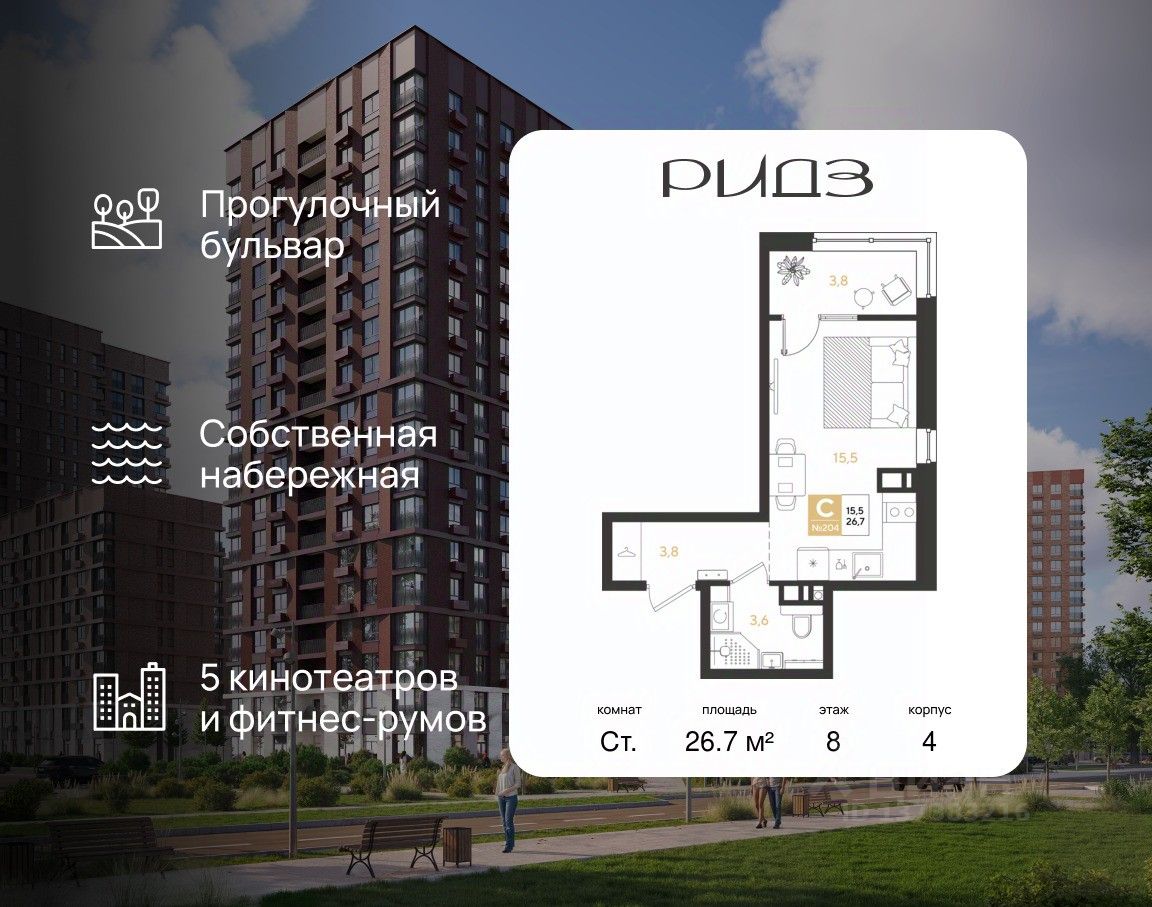 Жилой квартал бизнес-класса "РИДЗ" баланс природы и урбанистики. Дома построены по монолитно-кирпичной технологии с использованием системы Куубер, что обеспечивает прочность и долговечность конструкции. Пространство, где качество жизни на высшем уровне.