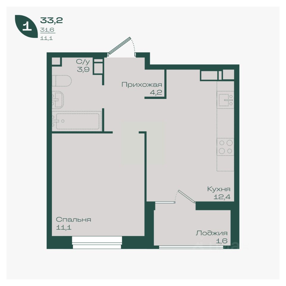 Общая площадь33,2 м²