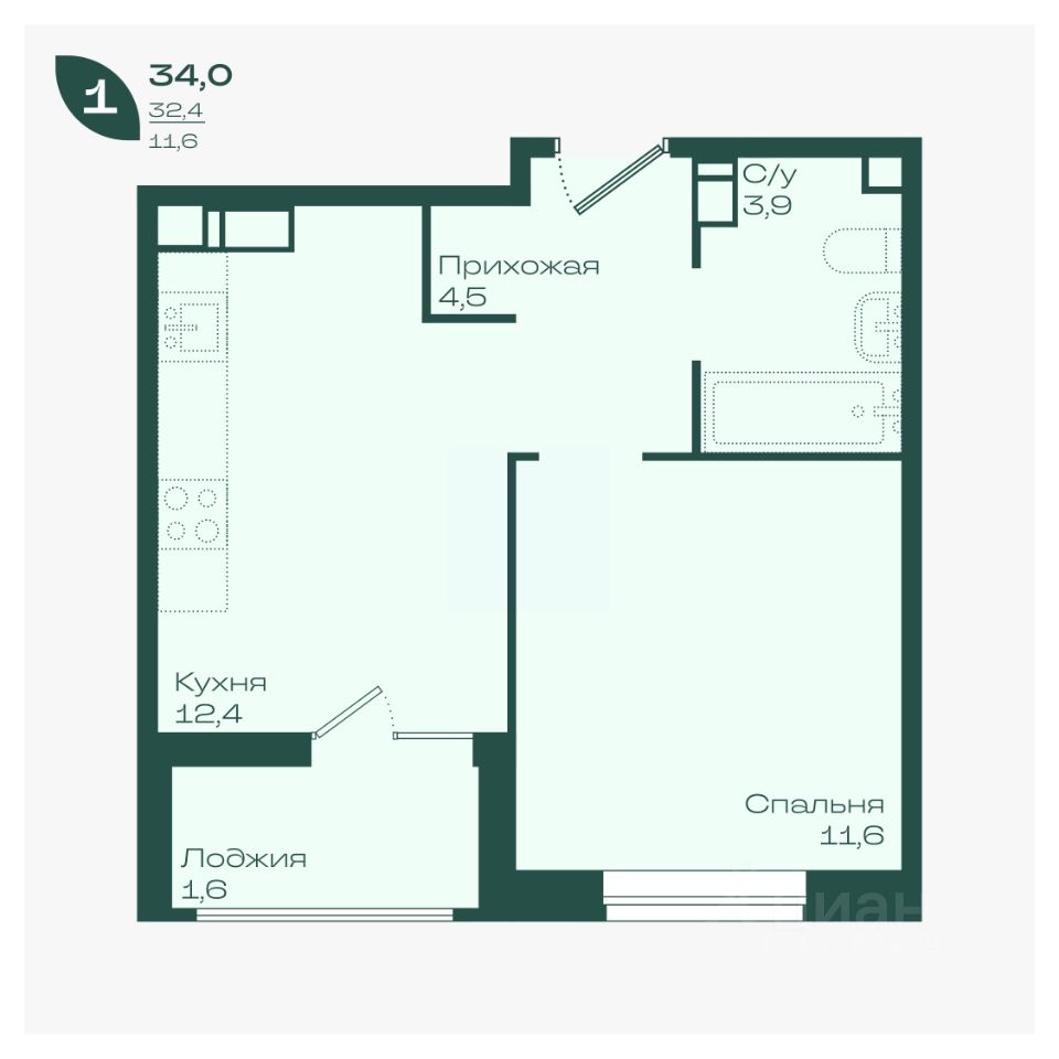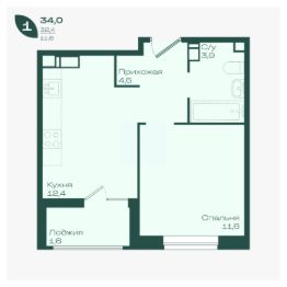 Общая площадь34 м²