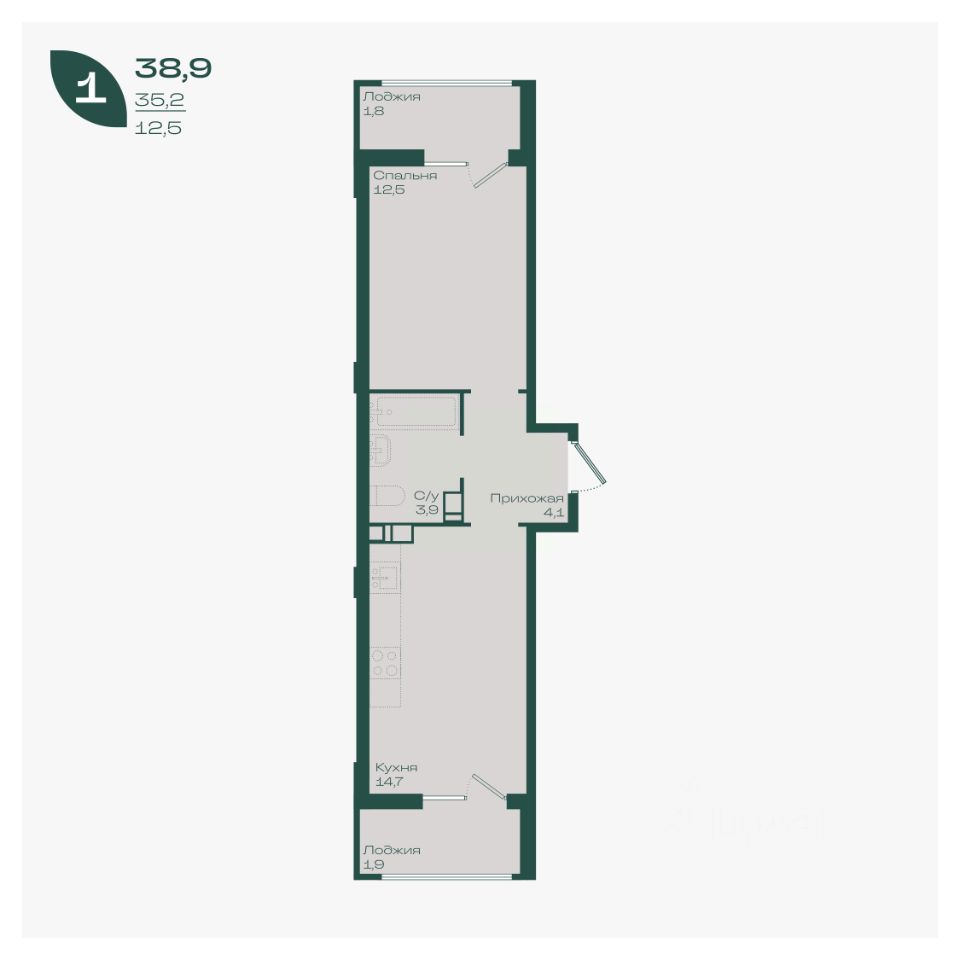 Общая площадь38,9 м²