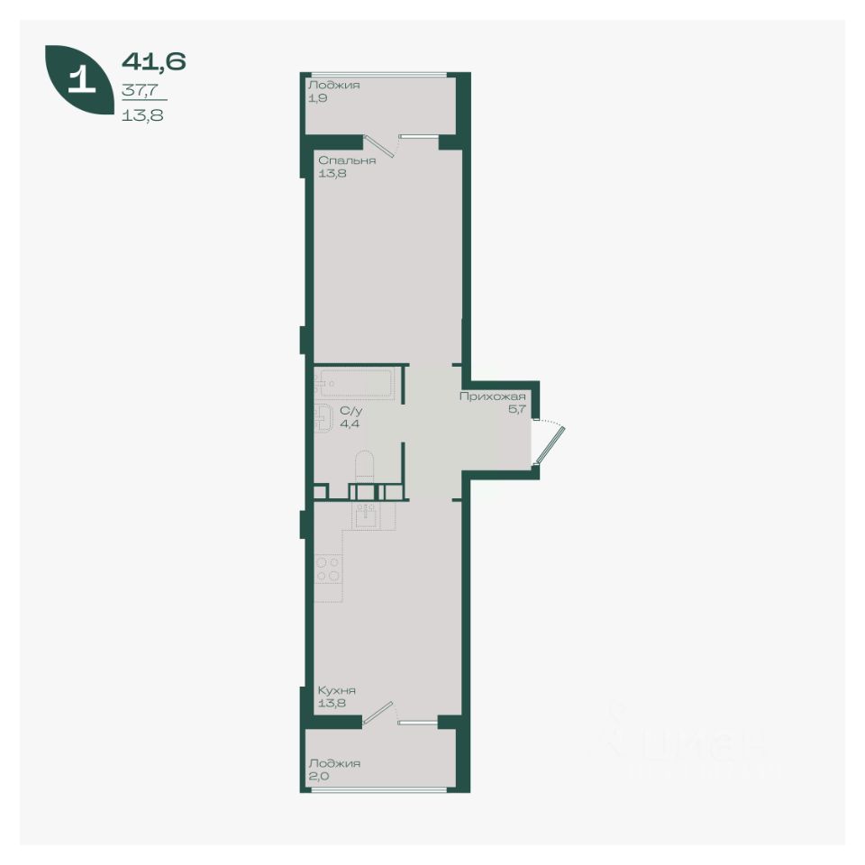 Общая площадь41,6 м²
