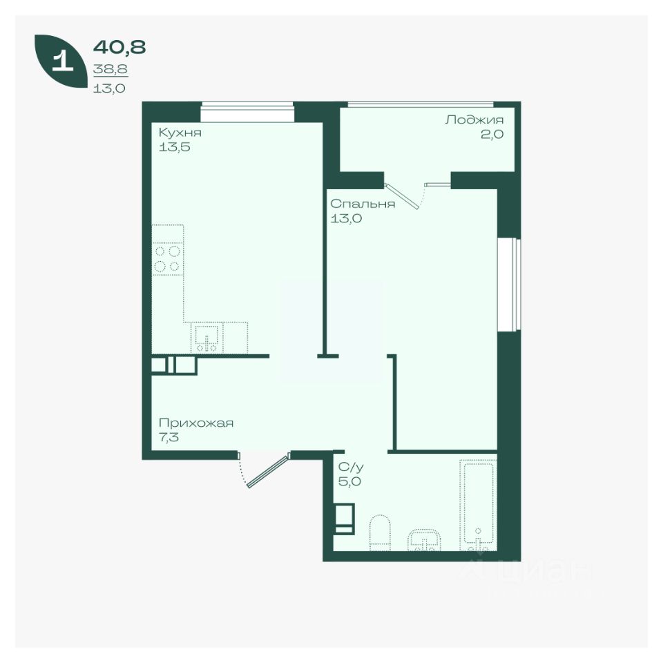 Общая площадь40,8 м²