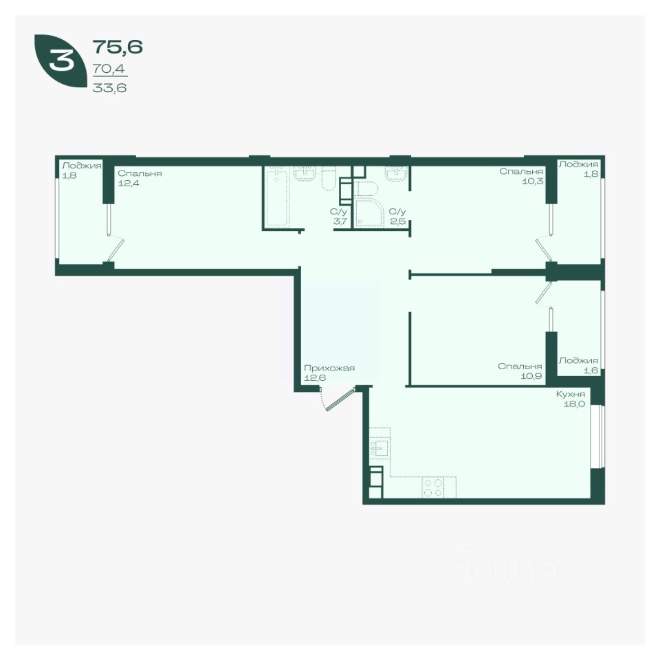 Общая площадь75,6 м²