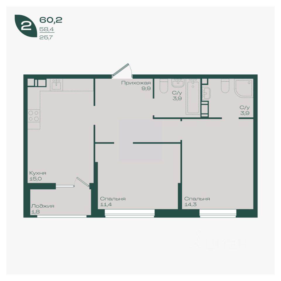 Общая площадь60,2 м²