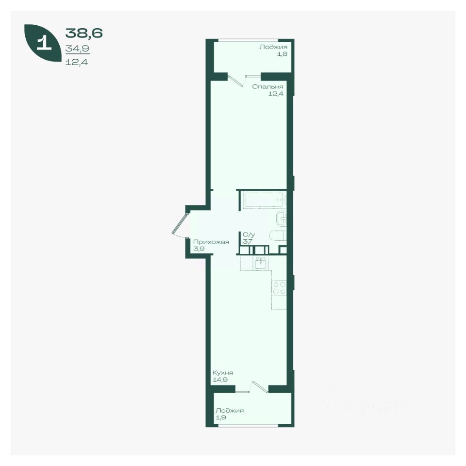 Общая площадь38,6 м²