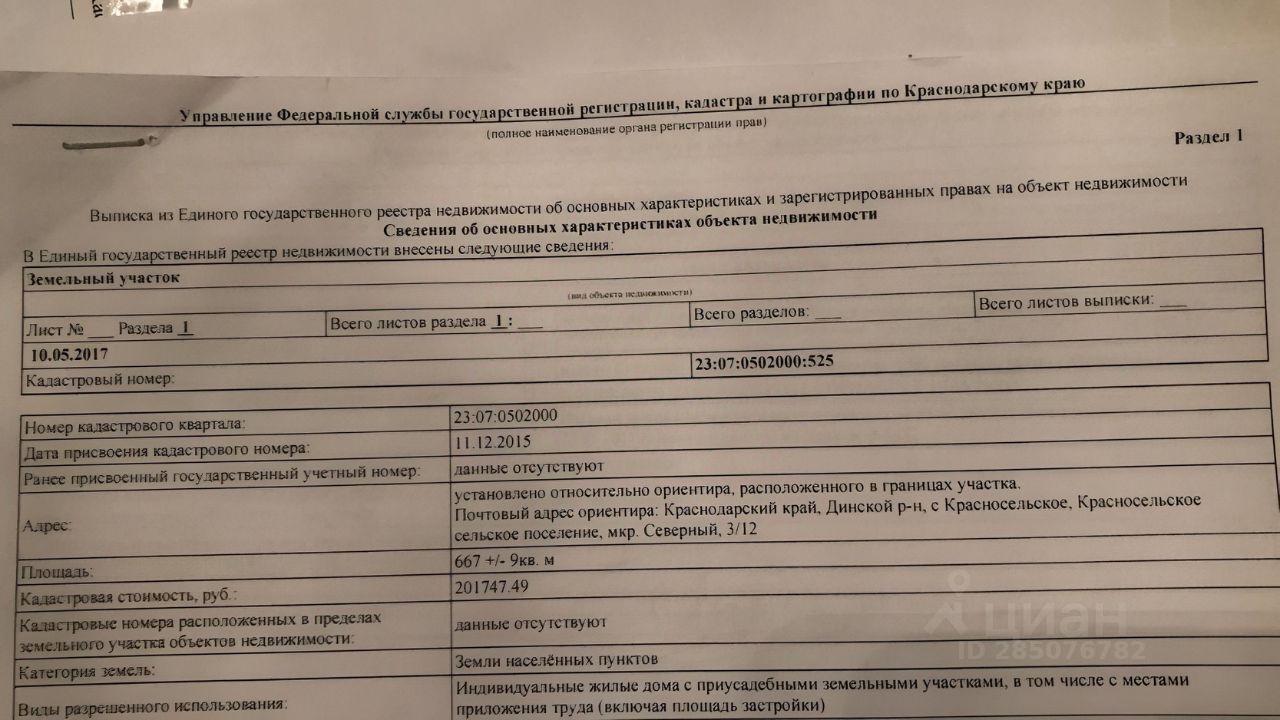 Кадастровый номер участка 23:07:0502000:*** указал продавец