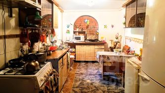Условно, одна часть состоит из четырех жилых комнат раздельного расположения, кухни, совмещенного с/у, коридоров и прихожей. Вторая часть, состоит из трех жилых комнат раздельного расположения, кухни, совмещенного с/у, кладовой и коридоров. На стенах обои нейтральных оттенков, потолки окрашены водоэмульсионной краской, полы застелены линолеумом. В кухнях стены оклеены обоями, рабочие зоны облицованы плиткой, потолки окрашены, полы застелены линолеумом. С/у облицованы плиткой. Установлены металлопластиковые окна. Счетчики на коммуникации. Отопление - газовый котел. Входные двери - металлические. Над каждым входом в дом построен навес. Из хоз. построек: кирпичный гараж, летняя кухня, летний душ, сарай, подвал, уличная колонка. Канализация - септик. Ухоженный земельный участок 10 соток, с фруктовыми деревьями и кустарниками. Есть виноградник и палисадник. Территория двора, частично, вымощена тротуарной плиткой. Металлопрофильный забор, ширина фасада 19,76 м.. За двором есть место для стоянки автомобиля. Инфраструктура района развита, в шаговой доступности магазины различных групп товаров, школа, детский сад, больница, остановки общественного транспорта, словом сказать, есть все для комфортной жизни.