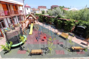 Первое 2-х этажное здание построено в 2016 году, площадью 430 кв.м. (кадастровый номер 23:30:0402010:865). Второе 3-х этажное здание введено в эксплуатацию в 2022 году, площадью 415,2 (кадастровый номер 23:30:0402010:1256). Фундамент - ленточный, материал стен - газобетон, перекрытия - плиты и монолит. Центральное водоснабжение, электричество 3-х фазное, газовое отопление и плиты, канализация - герметичные септики, объемом 10 м3. и 12 м3. с выводом за территорию, что минимизирует неприятные запахи при работе ассенизаторской машины. Обустроены апартаменты для круглогодичного проживания хозяев. Общее количество функционирующих помещений под сдачу - двадцать восемь (семь семейных 2-х комнатных, 4-х местных кондо с персональной кухней и отдельной террасой на первом этаже, девять семейных 2-х комнатных, 4-х местных кондо, восемь однокомнатных 2-х местных, три однокомнатных 3-х местных и одно однокомнатное одноместное кондо). Дополнительно подготовлены помещения для трех однокомнатных 3-х местных кондо на третьем этаже с небольшой личной кухней. Все, предназначенные для сдачи помещения, имеют совмещенный санузел с душевой кабиной и раковиной для умывания, телевизор, сплит-систему, полноценный холодильник и всю необходимую для комфортного проживания мебель.