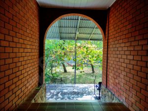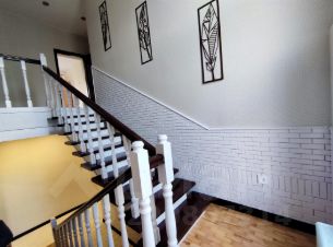 Высокое и широкое крыльцо ведет на первый этаж, где расположены прихожая с небольшой котельной, коридор с лестницей на второй этаж, большая гостиная с камином, комната, где сейчас мастерская хозяйки с погребком и выходом в гараж( что очень удобно), кухня, с/у, совмещённый с душевой.