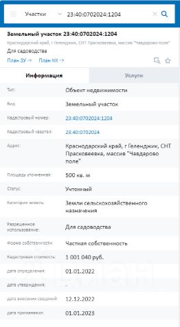Кадастровые номера участка 23:40:0702024:*** и здания 23:40:0702024:*** указал продавец