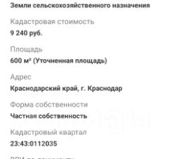 Срочно продам земельный участок общей площадью 6 соток в п. Дружелюбный. Участок ровный, прямоугольной формы с фасадом 20 метров. Категория земель - земли сельскохозяйственного назначения. Разрешенное использование для ведения крестьянского хозяйства. Кадастровый номер 23:43:0112035:1208. Расположен в живописном месте, до асфальта 300 метров. Участок от ближайшего СНТ отделен ореховой рощей. Локация указана на карте и скриншотах. Соседи построились и уже живут. С двух сторон огорожен забором: с одной от соседей профлистом, по задней части фасада - сетка рабица. Электричество по границе участка.