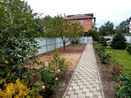 Сделан ландшафтный дизайн, посажены декоративные кустарники, множество цветов. Обустроены грядки с плодородной землей.