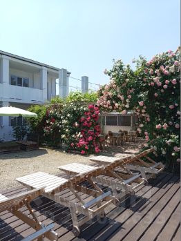 Домовладение имеет прекрасное месторасположение, находится в самом центре курортного поселка. Улица, на которой находится дом, ведет на центральный пляж, от дома до пляжа 150 метров. Кроме того, вся инфраструктура посёлка находится рядом с домом магазины, рынок, торговые ряды, коньячный дом, пиццерия, почта, аптека, банкомат, кафе и столовые.