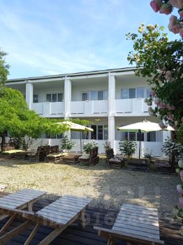 Второй дом двухэтажное благоустроенное отапливаемое здание (фундамент предусмотрен для строительства трехэтажного здания, есть возможность надстройки третьего этажа), общей площадью 214 кв. М. Материал постройки газосиликатный блок. Дом полностью оборудован и подходит для круглогодичного проживания. В доме 10 меблированных комнат со всеми удобствами, прачечная, котельная. Удобно сдавать по договору найма круглый год.