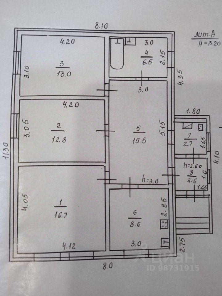 В доме прихожая, котельная, кухня-столовая, санузел и 3 изолированных комнаты. Окна металлопластиковые, высокие потолки.