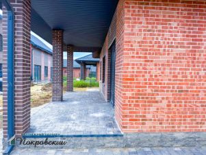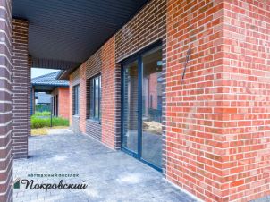 Стены - блок, утеплитель Rockwool, облицовочный кирпич (два цвета красный обожжённый и коричневый).