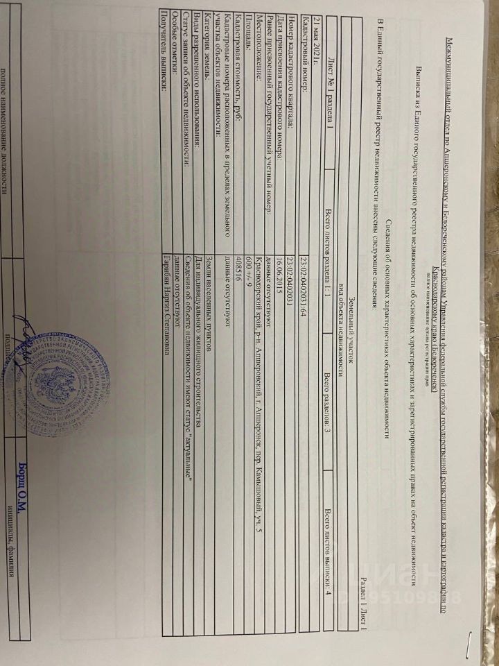 Кадастровый номер участка 23:02:0402031:*** указал продавец