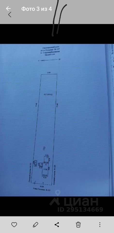 участок расположен в центре станици. В шаговой доступности школа, сад, магазины. Дорога асфальтированна. на участке расположен фруктовый сад, хоз постройки и аварийный саманный дом 22 кв. м. Возможна прописка. документы в порядке.