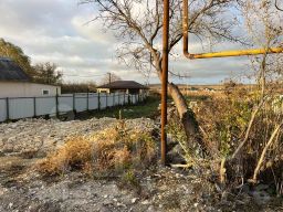 Фасад 14 метров 11 соток разбиты на два участка по 5.5 сотокгаз по меже на фото видно труба газовая поднята сделана арка для заезда 4 метра имеет два адреса два фасада можно объединить. Разрешение на строительство свет 15 кВ. До асфальта 100 метров. Цент станицы все в шаговой доступности.