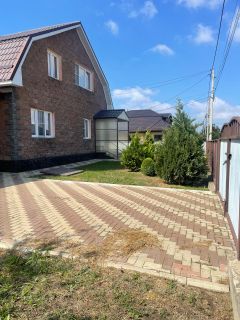 Просторный двор с навесом, отделан плиткой, есть парковочное место и хоз постройка, Септик 6 куб. , газ, 2 скважины, одна 6м, другая артезианская 25 м, очистительные фильтры.