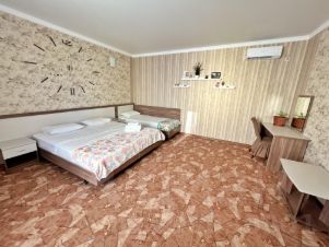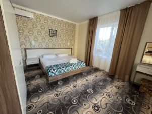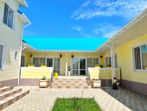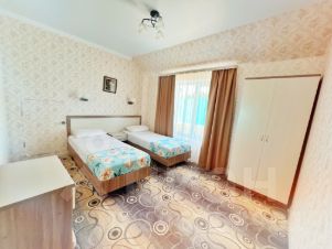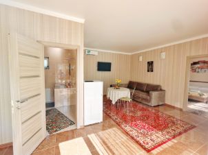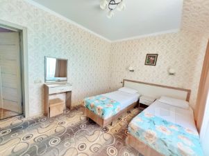 На территории расположен гостевой дом площадью 382 кв метра и дом площадью 115 кв метров для проживания хозяев. Гостевой дом имеет постоянных гостей, которые приезжают каждый год все 7 лет работы этого уютного места. Отель состоит из 6 апартаментов класса люкс. Фундамент ленточный, колонны и армопояс. Фундамент рассчитан на два этажа. При желании можно надстроить. Один номер 25 кв метров однокомнатный, три номера двухкомнатных площадью по 50 кв метров, один номер трёхкомнатный с двумя спальнями и холлом площадью 75 кв метров и один номер люкс так же с двумя спальнями, холлом и собственным балконом с потрясающим видом на море. Есть собственная столовая, оборудованная всем необходимым для комфортной работы повара. Все номера готовы к работе в следующем сезоне, укомплектованы всем необходимым (холодильники, телевизоры, утюги, фены и т.д.).