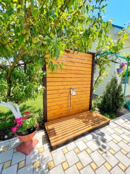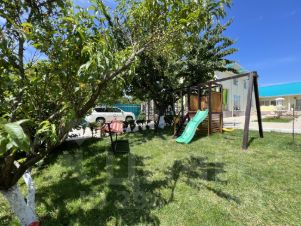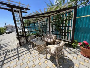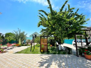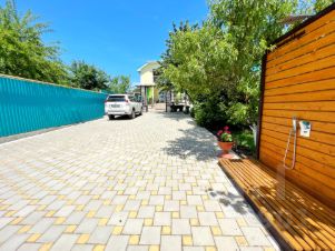 Дом отапливается итальянским газовым котлом. Двор полностью благоустроен: парковка, летний душ, ногомойка, детская площадка. Также на территории имеется большой сад и виноградники с практически вековыми деревьями. Установлены откатные ворота с десятью пультами для удобства гостей и видеонаблюдение для контроля за всей территорией. Дом для хозяев состоит из двухэтажного дома и летней кухни. Над летней кухней есть комната с удобствами и балконом. Основной дом двухэтажный. (В нем также остаётся вся мебель) На второй этаж вход с улицы. Эти комнаты тоже подходят для сдачи постояльцам. Первый этаж и летняя кухня отапливаемые. Есть подвал для хранения вина.