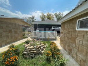 Для приятного времяпрепровождения во дворе установлены качели, а также каркасный бассейн, где вы сможете охладиться в жаркие летние дни. Фонтан создаст атмосферу покоя. На большом огороде вы сможете воплотить свои садовые фантазии и вырастить свежие овощи и фрукты. Теплица позволит вам заниматься садоводством в любое время года.