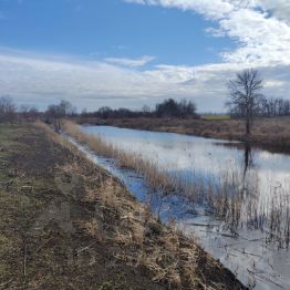 Большой участок. Есть вода и электричество. Проходит газовая труба во дворе. Рядом река (на фото видно).