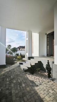 Дом жилой площадью 180 м2 и террасой 30 м2, выход на террасу на первом этаже из кухни-гостиной и на втором есть балкон, с выходом на кровлю парковочных мест, отделанную террасной доской, порядка 50 м2, крытый паркинг для двух авто. Так же есть цокольный этаж с несколькими помещениями. На планировке все указано.