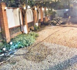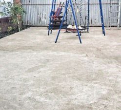 Двор забетонирован, выложен тротуарной плиткой. На парковке вмещается две машины.