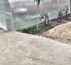 На заднем дворе — детская спортивная зона, высажены молодые плодовые деревья черешня, яблоня, груша, персик нектарин, 7 видов винограда.