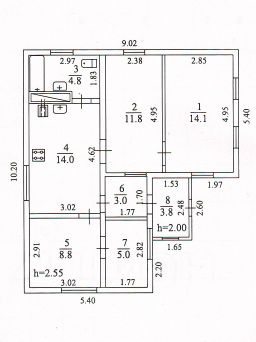 Станица Тбилисская, ЦЕНТР, р-н ДК. Жилой дом по ул. Астаховской. 1993 г. п. Общая площадь 65,3 кв. м, жилая 34,7. Четыре комнаты (14,1+11,8+8,8+5,0) кв. м, кухня/столовая 14; совмещённый санузел - 4,8 кв. м; коридор, прихожая. Высота потолка - 2,55 м. Газ, котёл, вода, все коммуникации. На участке есть гараж со смотровой ямой, подвалом и пристроенным помещением. Хозпостройки для птицы и прочее. Перед домом кусты малины, смородины, крупный кизил, виноград Молдова и др. Фасад 17,12 м, Земельный участок межёван, площадь 5 сот, под ЛПХ.